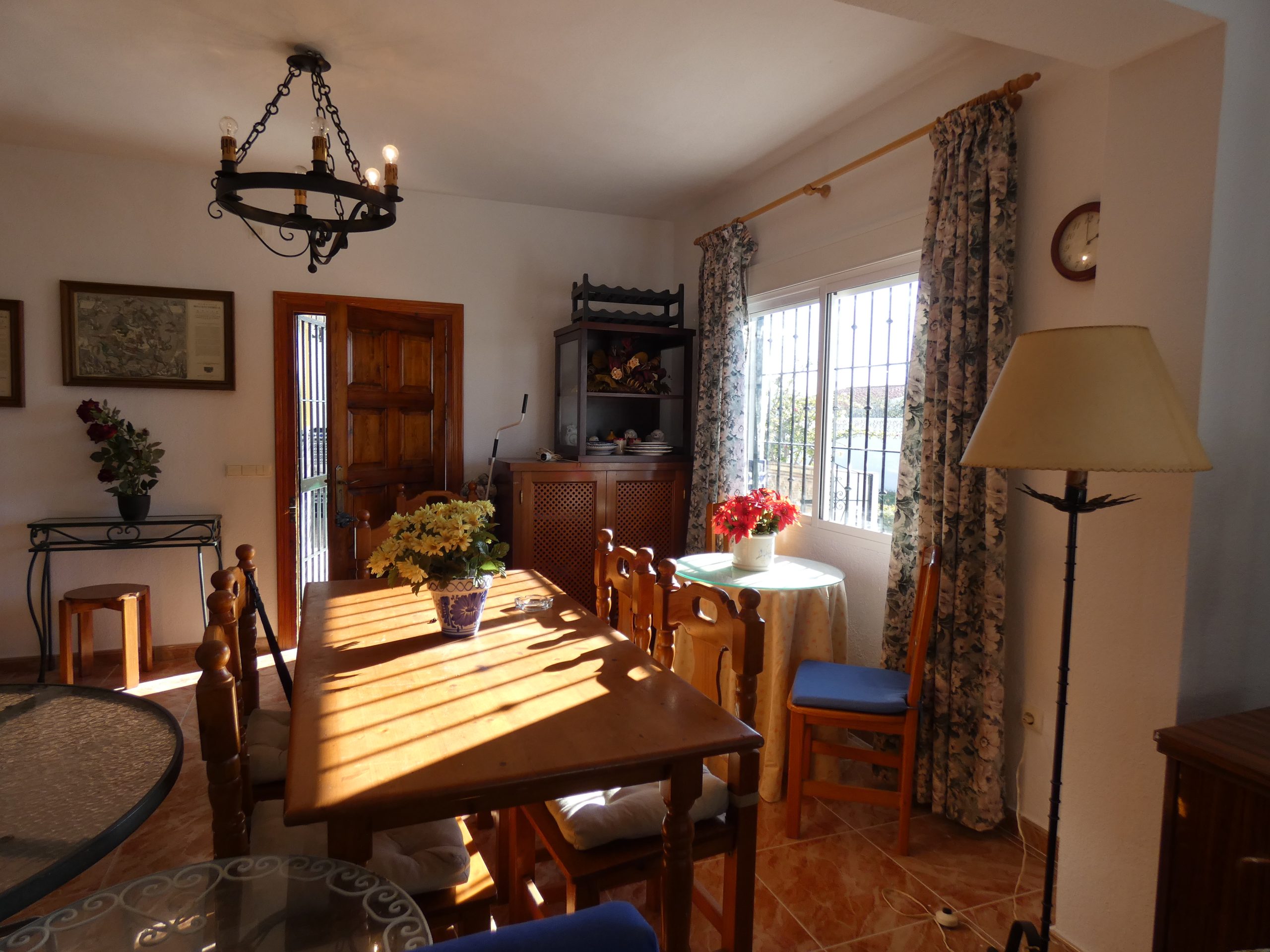 Consta de terraza delantera de unos 40m2 con porche. Al entrar a la vivienda encontramos el amplio salón, con zona comedor y zona de estar con chimenea. Un espacio acogedor donde podrás disfrutar de todas las horas de sol con su orientación Sur.